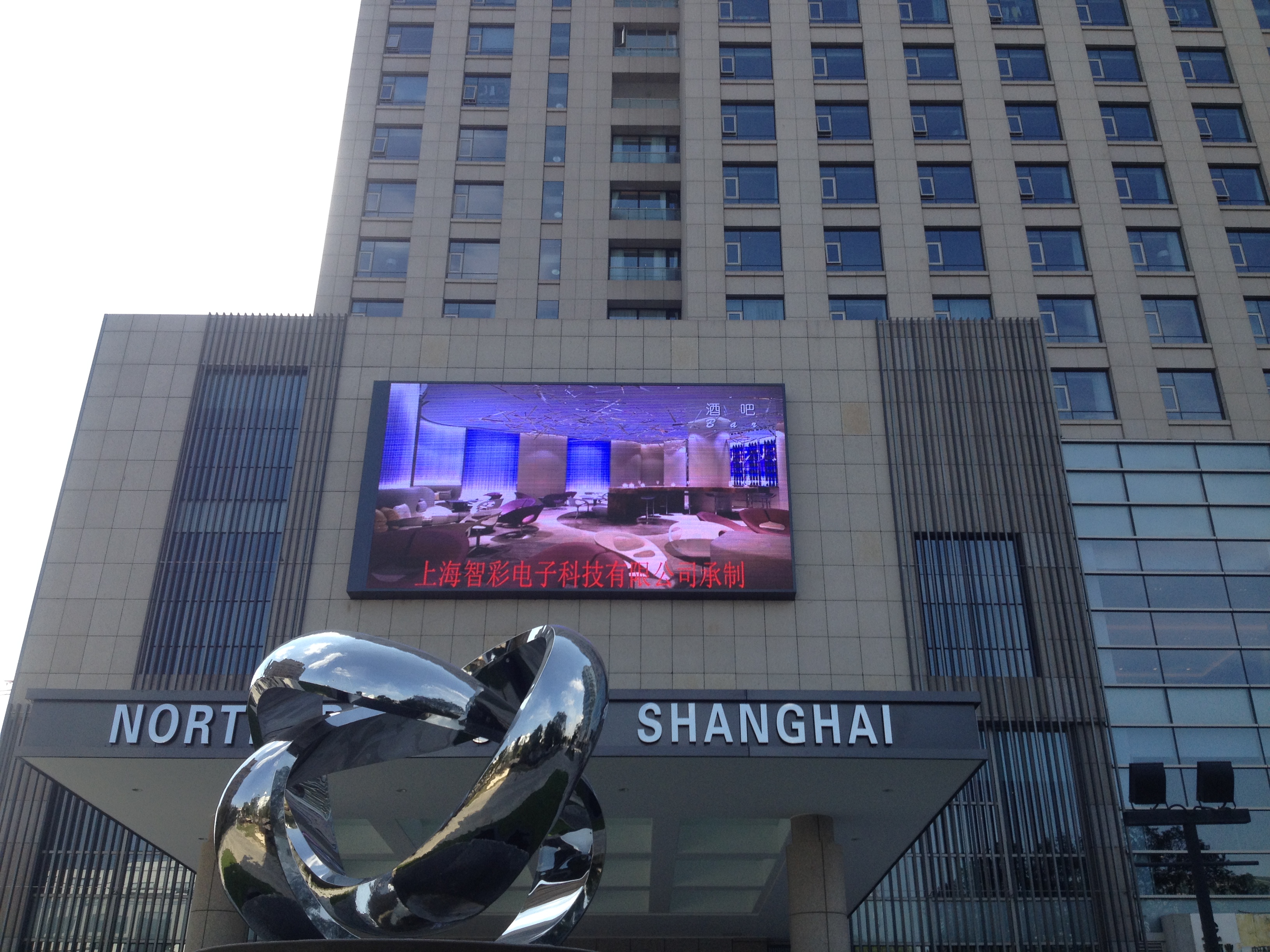 上海北上海國際大酒店會(huì)議室P8戶外全彩LED顯示屏由智彩科技承制。